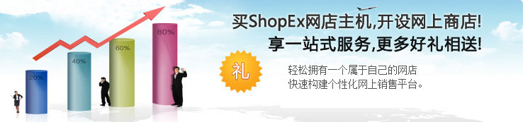 | ShopEx网店主机是我司做为国内著名网店系统开发商ShopEx金牌合作伙伴向广大电子商务客户推出的新一代网店系统。使您轻松拥有一个属于自己的网店。帮助企业及个人为开展电子商务而快速构建个性化网上销售平台。 |