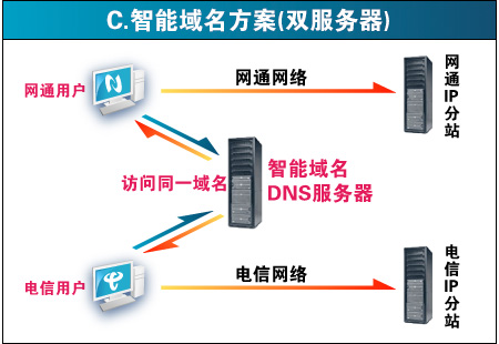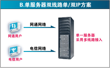 目前,虚拟主机行业中涌现出几家服务机构推出各种南北互联互通的虚拟主机服务,他们的解决大体分为四种,详见:双线路能打通南北网络瓶颈吗? (来源:世界网络) 第一种:双服务器双机房方案 第三种:智能域名方案(双服务器) 缺点:跟第一种方案一样,出多一倍的费用,并且"智能"解析域名在国内还不成熟,经常发生电信的用户访问时解析到网通ip的情况(因为ip数据库不准确)。 第四种:CDN解决方案 通过相关程序自动抓取用户源服务器的数据,然后缓存在不同网段节点的服务器上。 久久空间采用的双线数据机房为单服务器单ip双线接入方案,电信网通各15G出口,同时到铁通、联通、移动也有高速的路由。彻底解决了南北互联互通的问题,并且价格上也较其他双线方案便宜。比如,一个空间200元,用第一、三种方案需要200*2=400元,用第四种方案,需要再购买一个cdn,一共是200+300=500元。而采用第二种方案,我司的价格仅为300元,不但效果最好,而且成本最低。所以久久空间提供的双线路虚拟主机是目前国内性价比最高的双线主机!